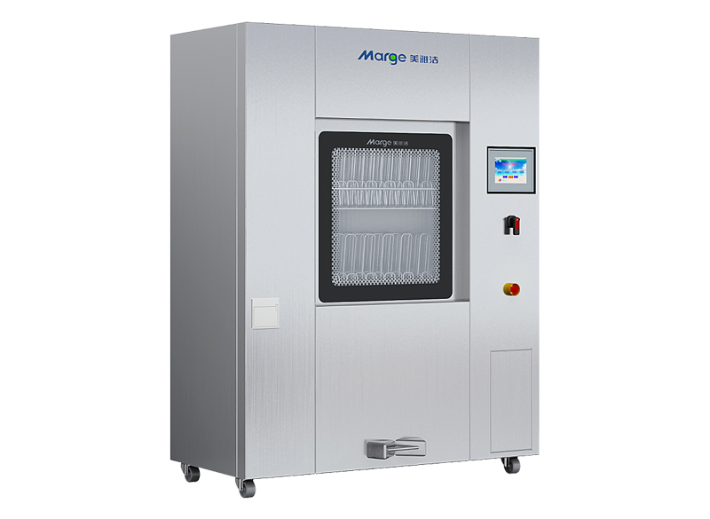第一道工藝是噴淋清洗,目的是通過(guò)大流量的噴洗,將器械表面附著的血污等雜質(zhì)沖洗掉。美雅潔研發(fā)出鑲嵌在噴淋臂里的扇形噴嘴,能夠噴出細(xì)顆粒,覆蓋范圍更廣,噴洗力度更大的清洗效果,比之同行更勝一籌。